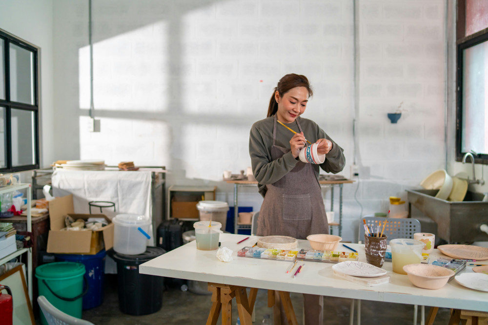 Før du begynder at indrette, er det en god idé at overveje, hvordan du bruger rummet. Del det op i zoner efter funktion: et arbejdsområde, et opbevaringsområde og eventuelt et udstillingsområde til færdige projekter. På den måde undgår du, at alt flyder sammen, og du får lettere ved at holde orden.